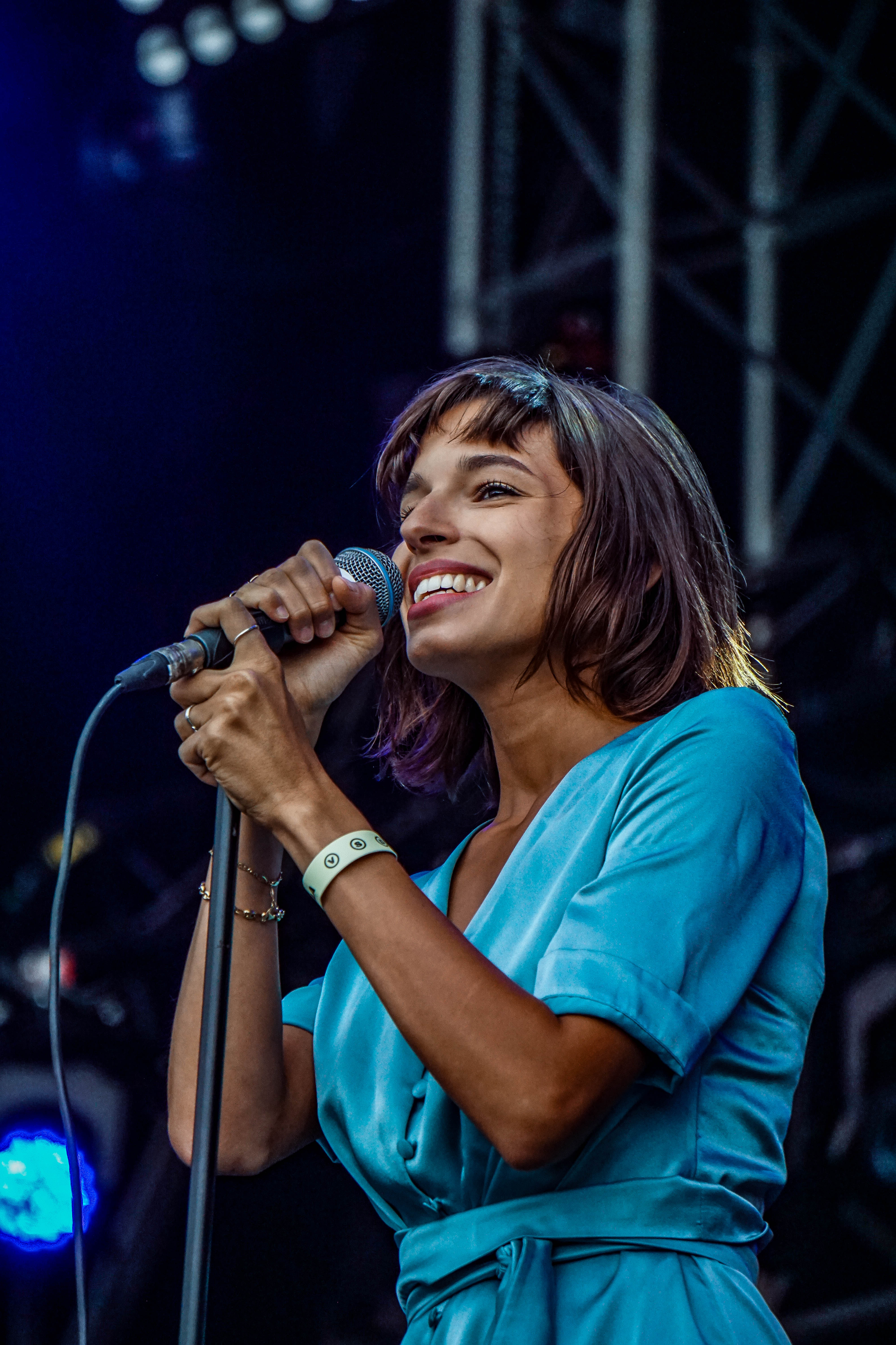 Un jour seule c’est bien. Mais l’océan à plusieurs, c’est mieux. Deux filles pour le prix de deux. On commence alors le périple : Bordeaux-Biarritz. C’est long. En voiture, le covoiturage de l’enfer. Armée de beaucoup de patience, jamais le festival n’avait été aussi près et pourtant si loin. L’heure défile, Angèle passe à 19h10 et à 18h30 nous sommes toujours prises au piège des transports en commun. 18h55, nos pas pressés pénètrent l’enceinte du festival se frayant un chemin entre boue et k-way (Biarritz sponso k-way). Je hurle à Juliette de peur qu’elle ne m’entende pas dans ma course effrénée de retrouver mon crash barrière « Je fonce on se retrouve plus tard ». Et j’entends « Crie pas, hein. Je suis là ». En effet, elle aussi, elle court. Nos oreilles sont aguichées par une montée de notes argentées. On se dirige vers la scène pour se prendre une pluie de « Thune ». Une série de grimaces assorties d’une énergie communicative, la loutre navigue parmi ses flows. Angèle confirme son statut d’artiste. Jonglant entre son clavier et des déhanchés à la Beyoncé, elle nous enchante. C’est alors tout naturellement que nous reprenons en cœur « La loi de Murphy ».
