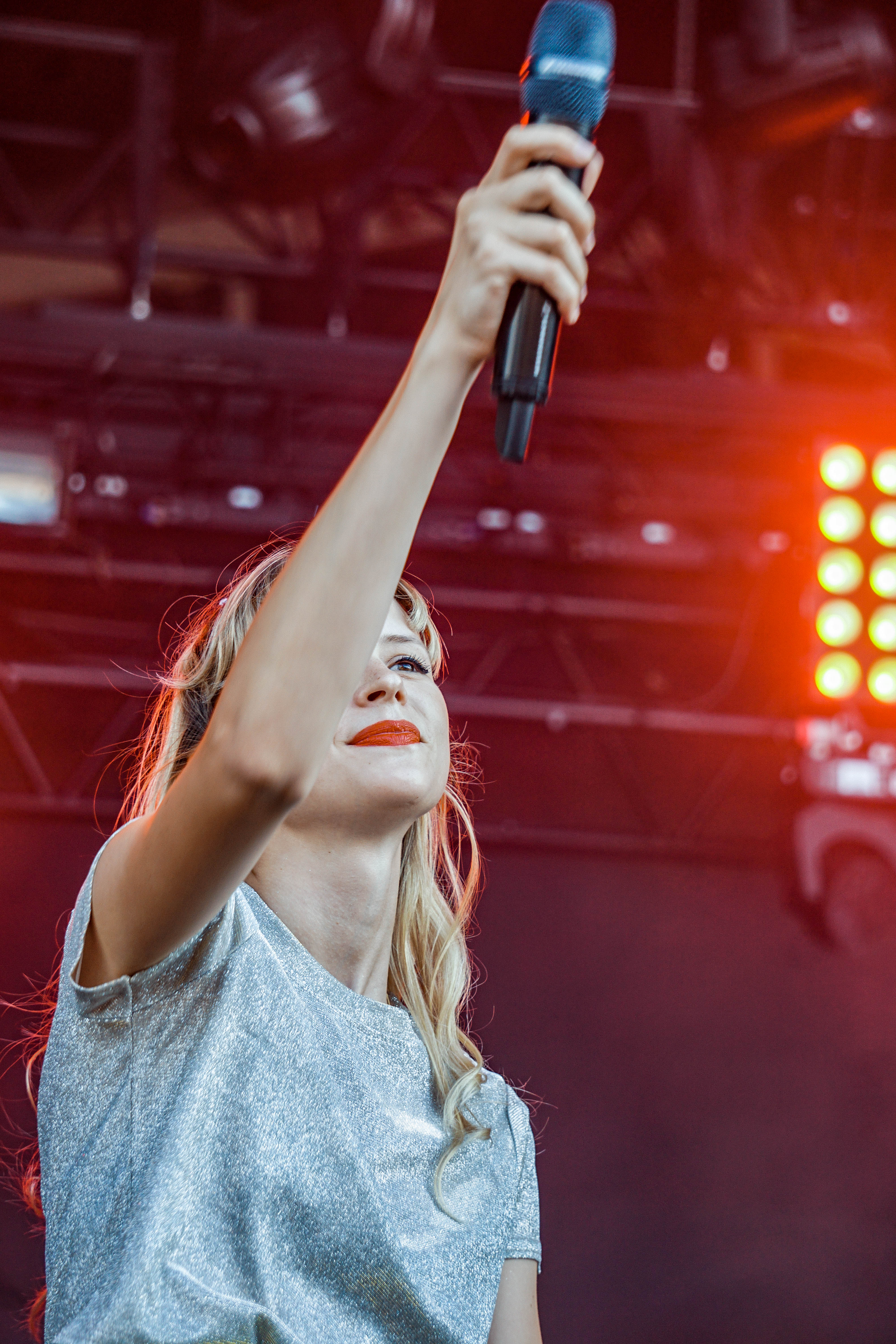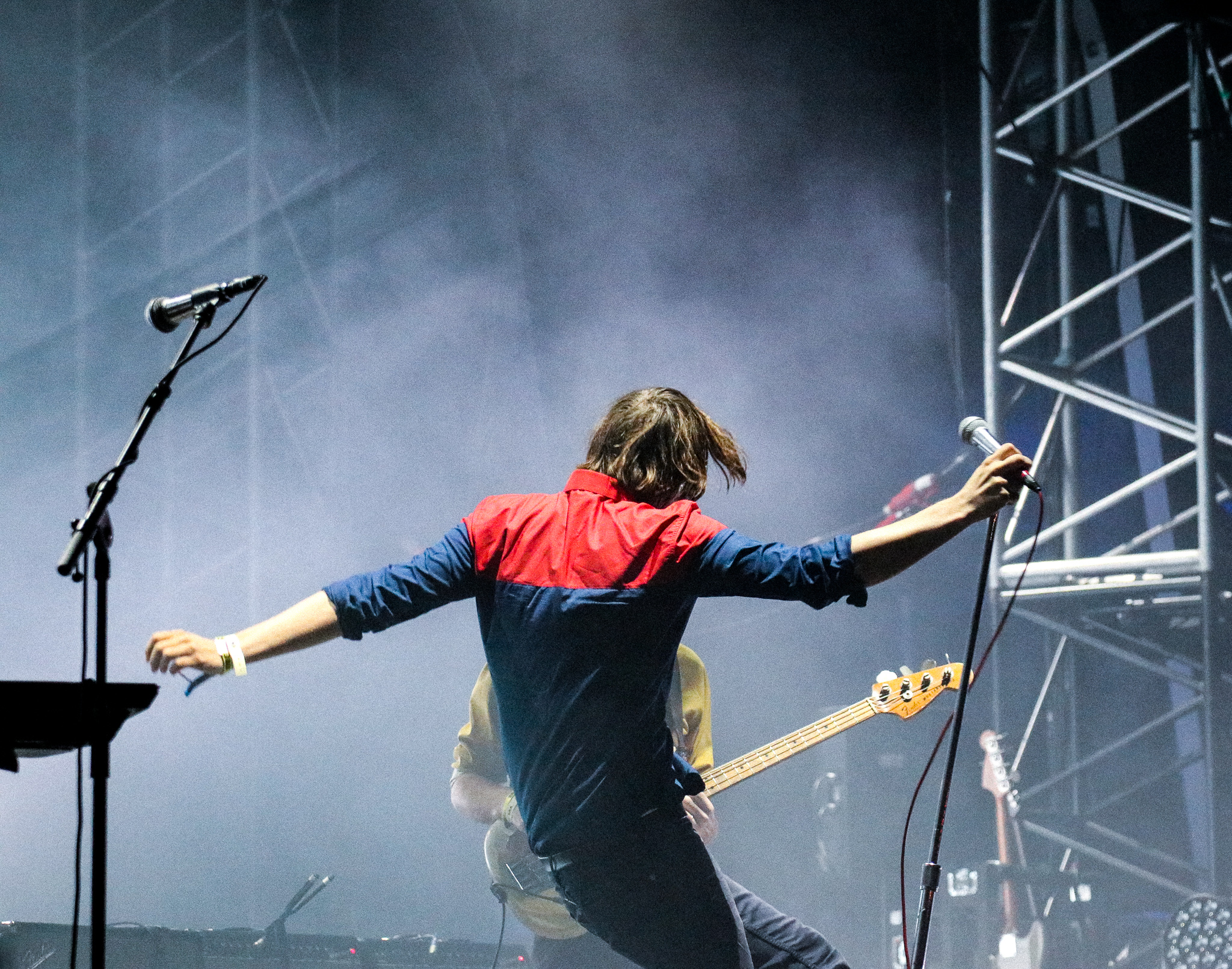 Après avoir mangé sur l’herbe mouillée, on renaît de nos cendres tel un Phoenix (oui, j’ai bossé mon vocabulaire). L’ambiance est à son apogée. Le sol se met à vibrer au rythme des nombreux battements de pieds. Le public connaît clairement son sujet. Il faut dire que Phoenix, on potasse depuis 1999. Alors, on ne se laisse pas avoir au tournant et on suit chaque note, on reprend chaque souffle et on atterrit sur l’arc-en-ciel en folie. Une bienveillance générale s’empare des festivaliers. On se lance des clins d’oeil lorsque « Lisztomania » résonne. On brille de bonheur « like a riot, like a riot, Oh ! ». On savoure la pop légère et indétrônable de Phoenix.