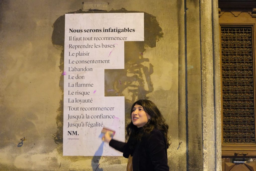 En référence au poème Nous serons infatigables collé dans l’espace public par la poétesse et artiste de rue Nathalie Man, au fil des retours d’expérience, nous assistons à la construction d’une communauté engagée qui participe à améliorer la position et la condition des femmes dans notre société.