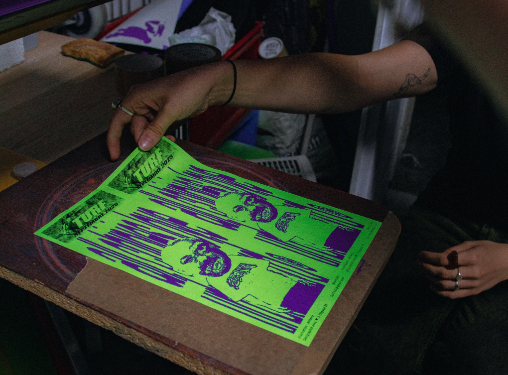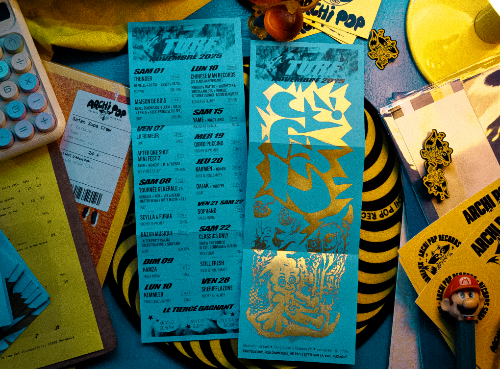 Ayant la volonté de créer chaque mois un objet physique à la fois original et unique, Anne-France et Léa sélectionnent un·e artiste local·e différent·e, illustrateur·ice ou graphiste, pour produire l’agenda avec son propre style : « Au-delà de mettre en avant des concerts ou des artistes, travailler la dimension graphique de notre agenda contribue à démocratiser l’art peu accessible qu’est la sérigraphie. » Ce choix de revenir au papier, à l’objet imprimé, permet aussi de créer un pont direct avec les fanzines et les premiers magazines rap, ces supports souvent artisanaux, qui circulaient avant l’ère du digital. TURF défend ainsi une approche physique et locale : un format où le rap s’ancre dans une culture graphique et vivante.