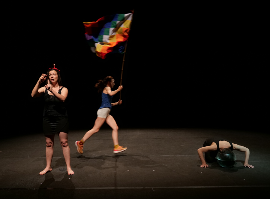 Nous sommes trois comédiennes au plateau : Thumette Léon, qui est sourde, Agnès Pelé et moi-même. Agnès et Estelle Coquin, la metteuse en scène, ne savent pas signer. La présence d’interprètes sur tout le processus de création a été nécessaire pour que le dialogue soit fluide au sein de l’équipe et que tous les enjeux, qu’ils soient liés aux futurs souhaitables ou à la langue des signes, soient compris par toutes.