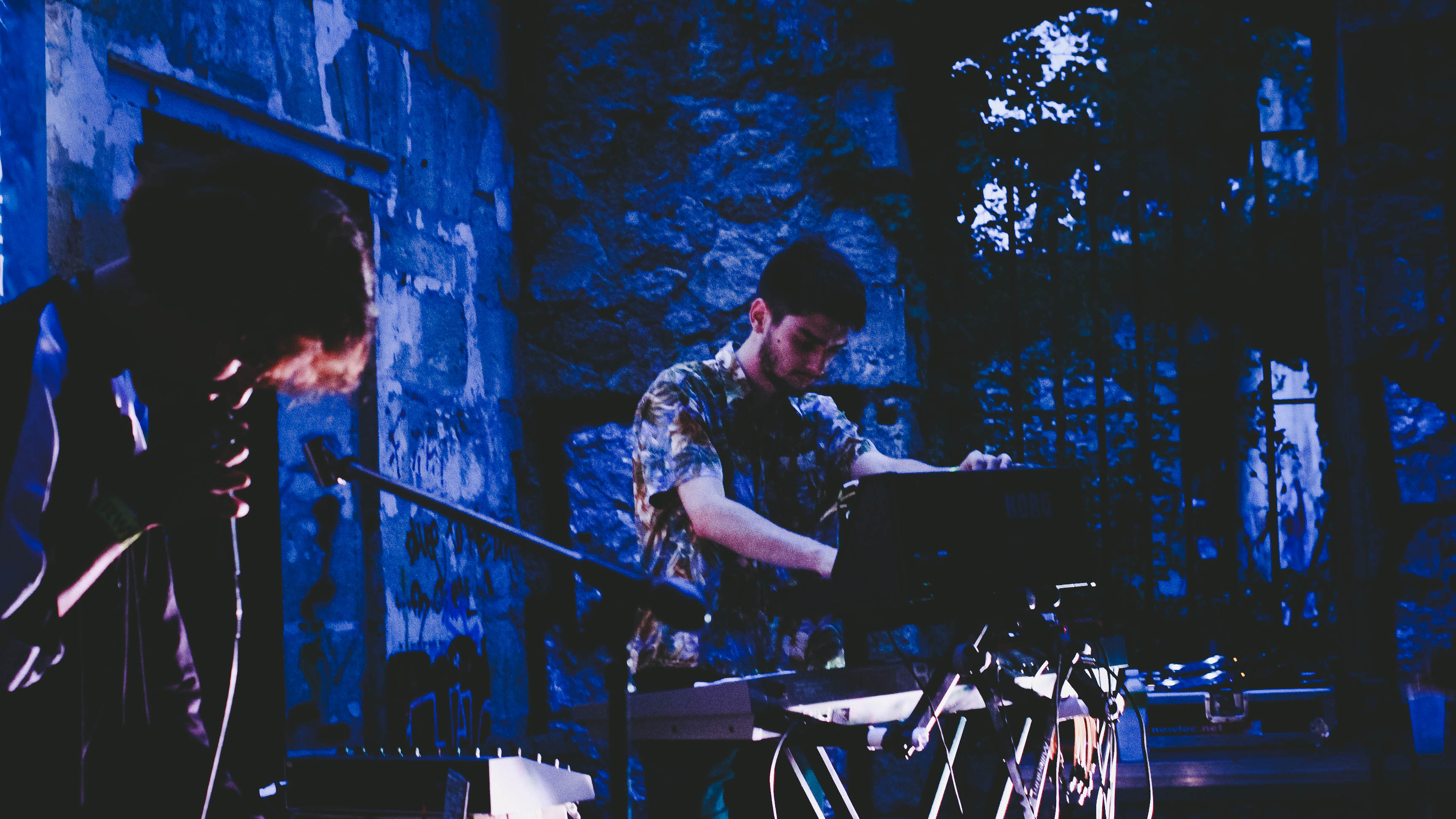 « Come on dance with me… ». C’était le 20 juillet, l’Almanach de la Caserne Niel proposait un plan à cinq tout en douceur. Entre la tendresse des mecs de Ménage à Trois et la synth-pop d’Agar Agar, Cracki Records avait exactement de quoi enflammer le ciel. L’atmosphère intimiste due à la proximité de la scène intimide autant qu’elle séduit. On est jamais aussi près des artistes. Être propulsé ainsi aux confins de leur musique, toucher des yeux les micros et sentir les voix aux creux de l’oreille, ça marque. On était bien au calme, entre skate, musique et graff. C’est ça l’esprit Darwin. Dans cette ambiance sauvage, on est allé taper la discute avec le duo Agar Agar, entre deux murs.