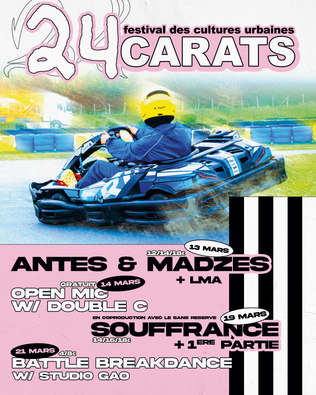 Porté par Le Rocksane, le festival 24 Carats revient pour une troisième édition à Bergerac. Lancé en 2024, l’événement a été imaginé comme un temps fort dédié au hip-hop et au rap, des esthétiques encore trop peu représentées en Dordogne. Après avoir accueilli l’an dernier Disiz, Spider Zed ou encore Benjamin Epps, la programmation 2026 réunira Souffrance, Jeebs, Antes & Madzes et LMA sur la scène du Rocksane.